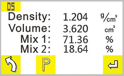 3. 混合比比重測試功能Mix2(密度值 / 體積值 / 第二組主要材料之比例)